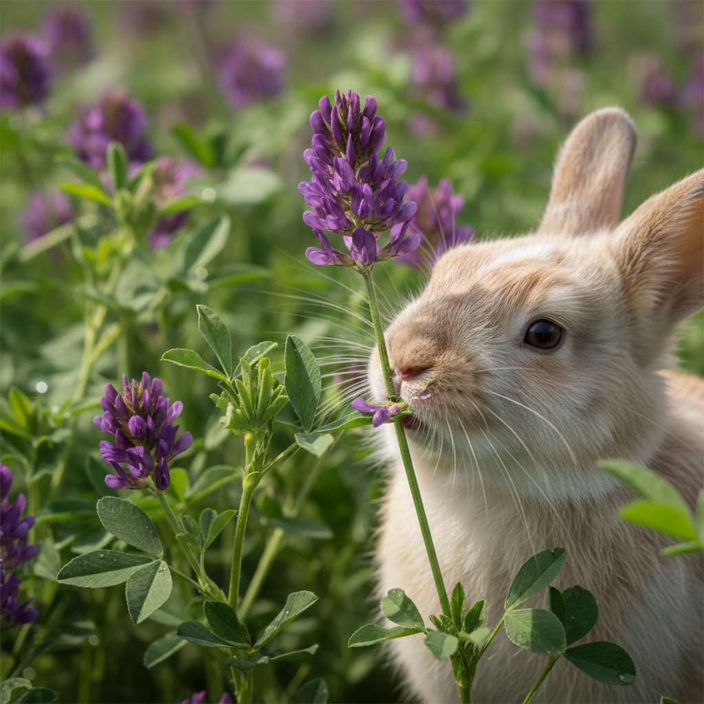 Known as the “Queen of Forages,” alfalfa is a legume prize for its high protein content and rich mineral profile, including calcium and magnesium. It is a favorite for dairy cows, growing rabbits, and horses that require extra energy. Unlike standard grass, alfalfa fixes nitrogen in the soil, making it beneficial for the land as well. Its deep root system makes it drought-resistant, providing a reliable food source in arid climates.