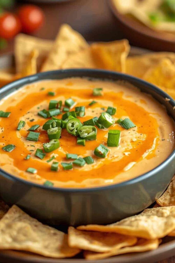 - Garnish and Serve: Carefully remove the dish from the oven. Let it rest for about 5 minutes, as it will be very hot. Garnish with freshly sliced green onions and any remaining blue cheese crumbles. Serve immediately with your choice of dippers like tortilla chips, celery sticks, carrot sticks, crackers, or toasted baguette slices.