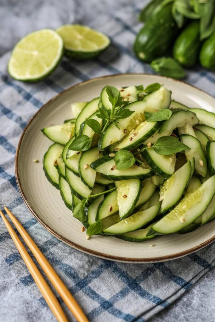 Serve this Asian cucumber salad as a bright side with dumplings, noodles, rice bowls, or grilled meats anything rich benefits from its tangy crunch.