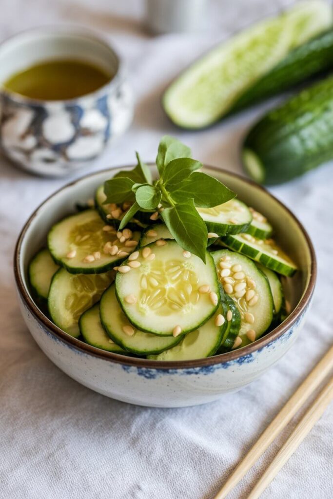 Prefer a simpler, ultra-minimalist version? Keep it to cucumbers, rice vinegar, sesame oil, salt, pepper, and sesame seeds still crisp, still photogenic, just quieter in flavor.