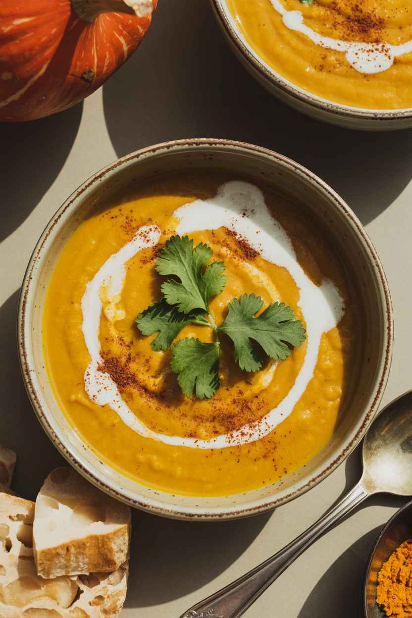 Main Course Pairing: Serve the Curried Pumpkin Soup alongside a fresh, crisp salad or a crusty piece of warm, buttered bread for a complete and satisfying meal.