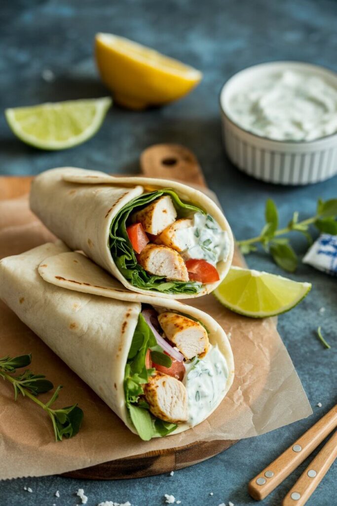 🍰 Recipe #1: Greek Chicken Wraps with Tzatziki