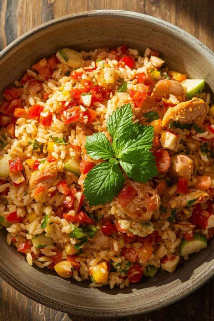 Break away from boring lunches with this incredibly vibrant and satisfying salad. It’s a festival of textures and flavors, combining hearty chicken and rice with the sweetness of corn, creamy black beans, and the fresh crunch of bell peppers and red onion. Everything is tossed in a zesty lime-cumin vinaigrette that ties it all together. This dish is perfect for meal prep, picnics, or a light yet filling dinner that requires no cooking beyond the initial rice preparation.